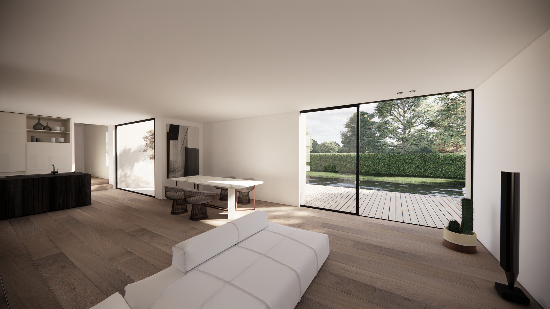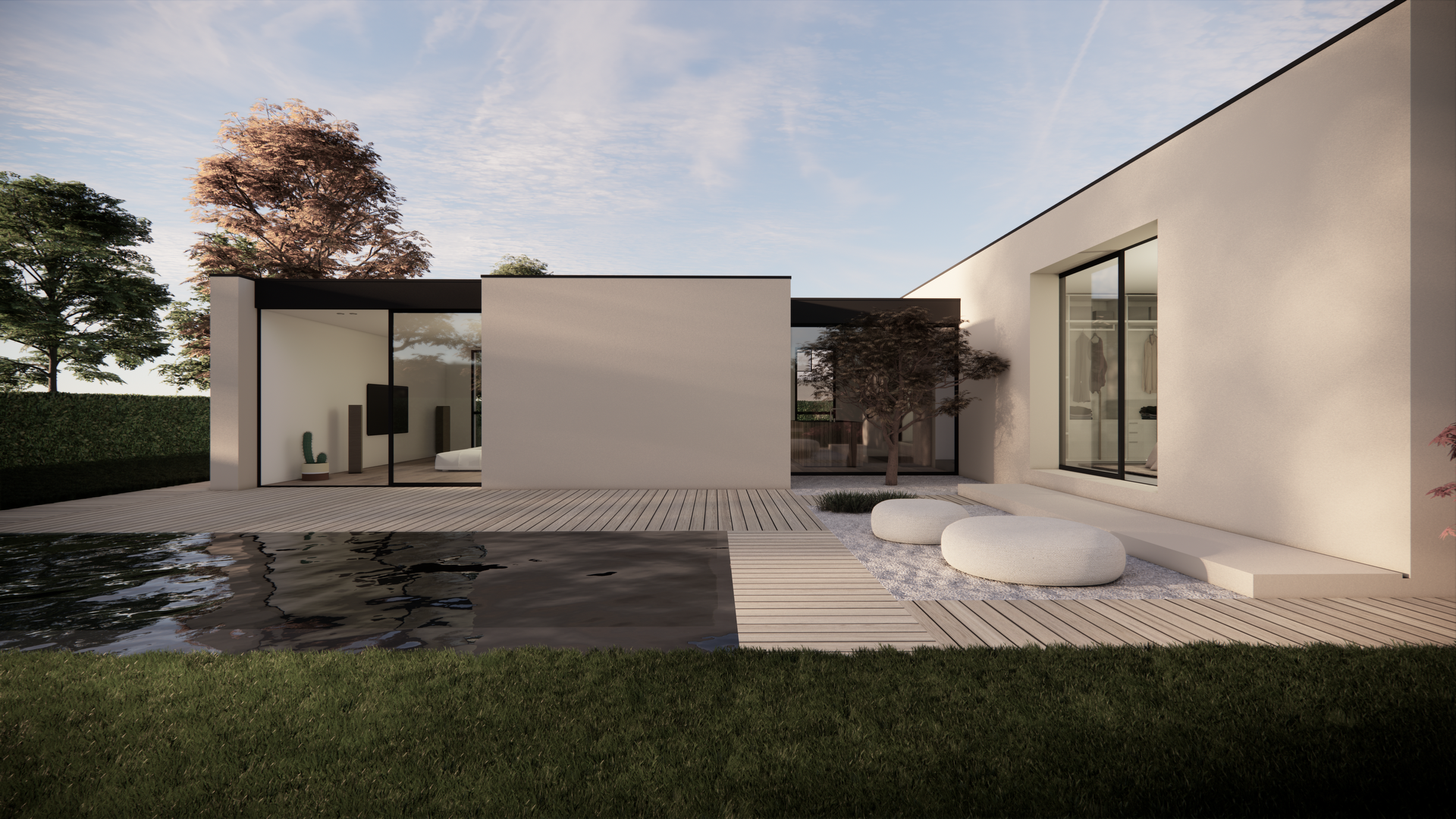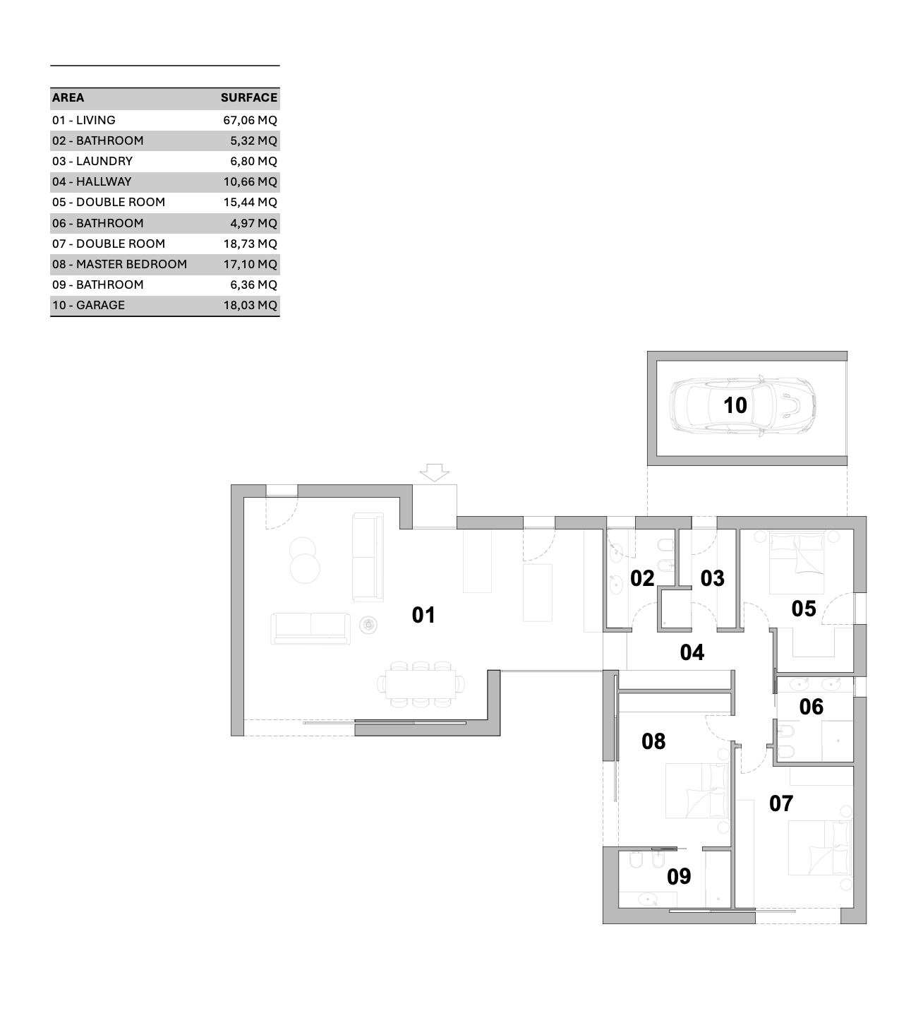 Un gioiello di design architettonico, si sviluppa su un unico piano, offrendo un ambiente spazioso e accogliente.